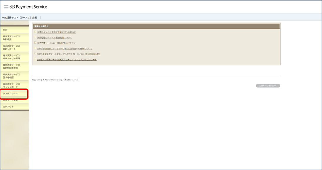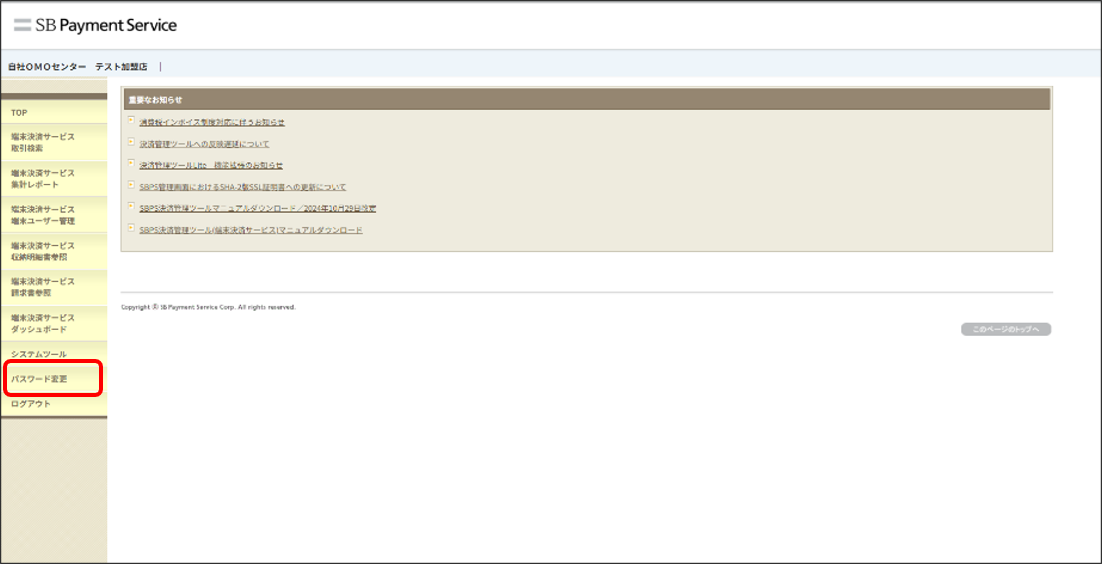 - パスワードの変更はSBPS決済管理ツールから行います