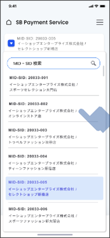 1つのIDで、複数のMID-SIDと契約している場合、画面上部のMID-SID欄をタップしてMID-SIDを切り替えることができます。